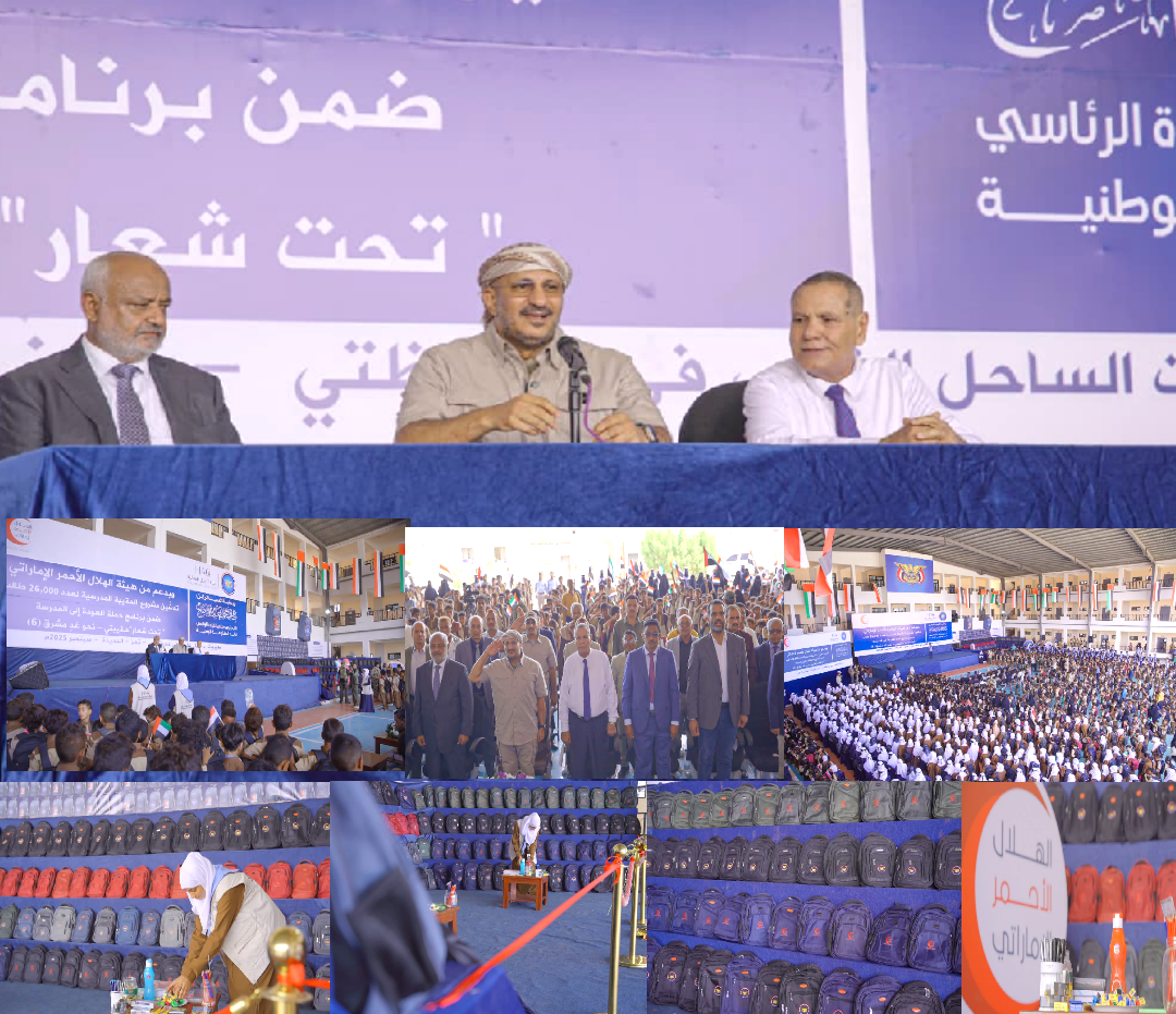 دشن نائب رئيس مجلس القيادة الرئاسي، عضو المكتب السياسي وقائد المقاومة الوطنية العميد الركن طارق محمد عبد الله صالح، اليوم في مدينة المخا، مشروع خلية الأعمال الإنسانية لتوزيع الحقائب المدرسية في مديريات الساحل الغربي بمحافظتي تعز والحديدة، وذلك بدعم سخي من الهلال الأحمر الإماراتي، في إطار الجهود الرامية لدعم التعليم وتخفيف الأعباء عن كاهل أولياء الأمور.
