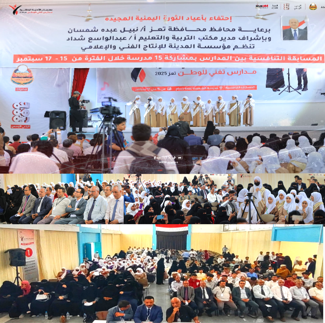 وأشار “شداد” إلى أن مكتب التربية والتعليم يولي اهتمامًا بالغًا بغرس قيم الولاء الوطني في نفوس الطلاب، وتشجيع المواهب الفنية التي تعبر عن هموم الوطن، وتعيد التذكير بمسيرة الثورات اليمنية المجيدة ضد الاستبداد والإمامة والاستعمار، باعتبار الفن سلاحًا مؤثرًا ورسالة سامية.