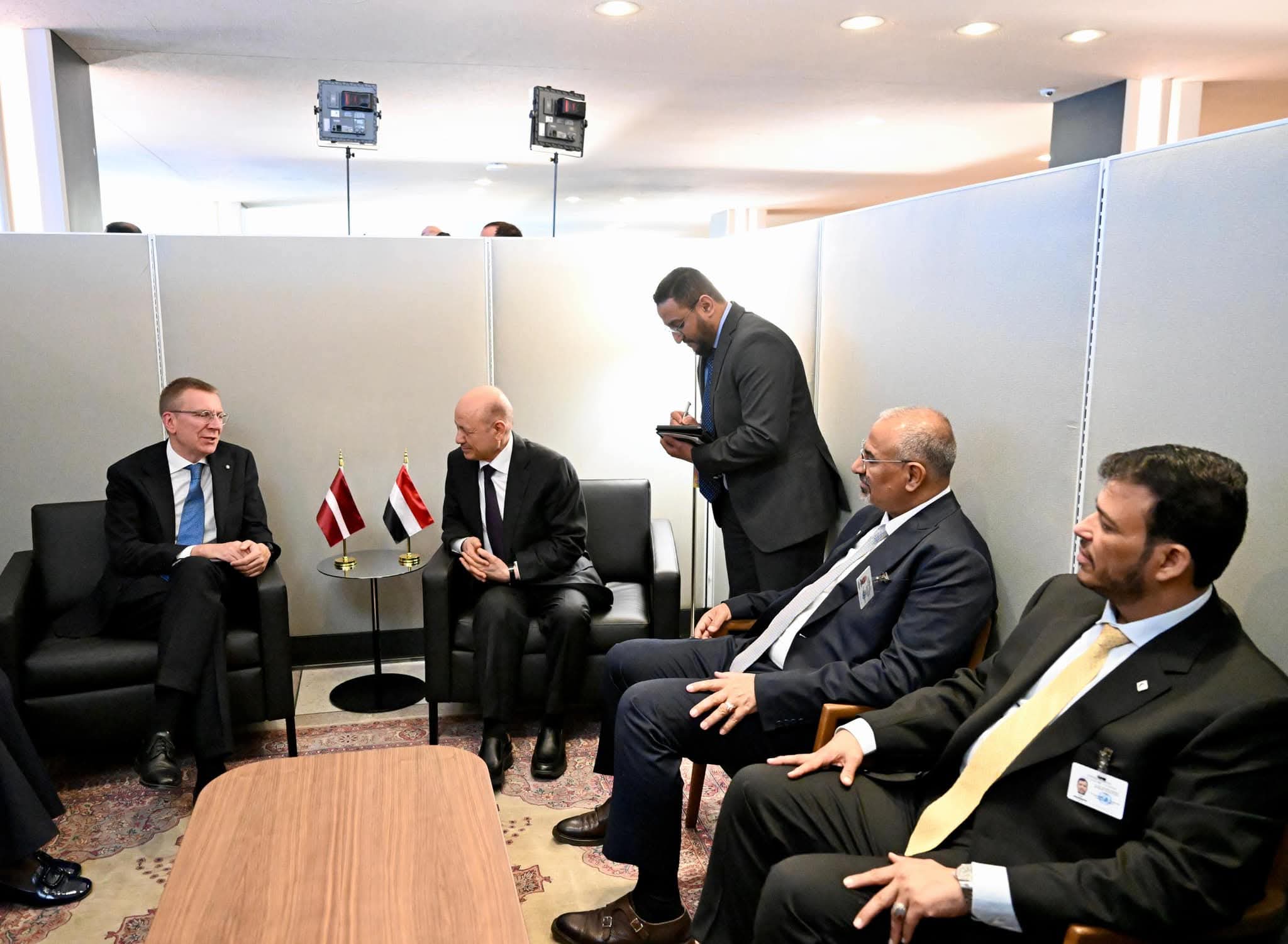 التقى فخامة الرئيس الدكتور رشاد محمد العليمي، رئيس مجلس القيادة الرئاسي اليوم الثلاثاء في نيويورك، ومعه عضوا المجلس اللواء عيدروس الزبيدي، والدكتور عبدالله العليمي، فخامة الرئيس إدجار رينكيفيتش رئيس جمهورية لاتفيا وذلك على هامش اجتماعات الجمعية العامة للأمم المتحدة.