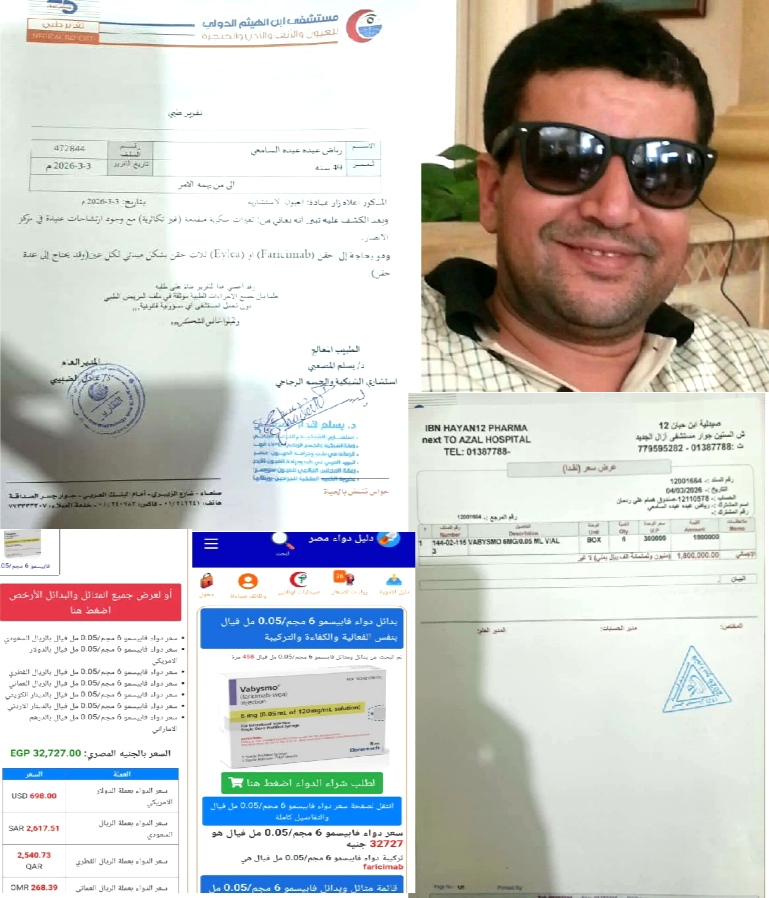 وأشار إلى أن معاناة “السامعي” تفاقمت مع تدهور حالته البصرية، حيث خضع لجلسات علاج متكررة دون تحقيق تحسن في استعادة وظيفة الشبكية، ما دفع الطبيب إلى تغيير الخطة العلاجية واللجوء إلى إبر حقن جديدة تبلغ قيمة الواحدة 350 ألف ريال، وتستلزم استيرادها من الخارج، داعياً الجهات المعنية إلى سرعة التدخل لإنقاذه.