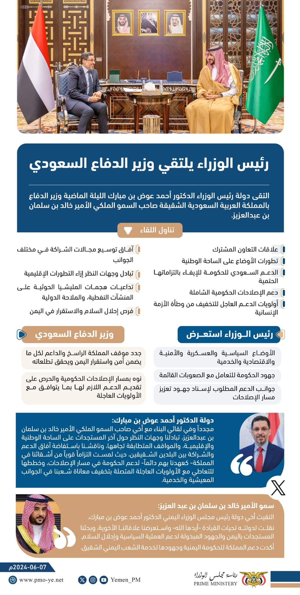 إنفوجرافيك || لقاء رئيس الوزراء د.أحمد بن مبارك، مع وزير الدفاع السعودي الأمير خالد بن سلمان بن عبدالعزيز