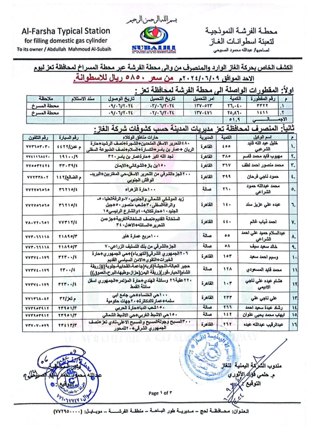 وفي سياق أخر ضخت مؤسسة ساسكو لتموين كبار المستهلكين والسيارات بمديريات مدينة تعز كميات كبيرة نحو ما يقارب ال600 ألف لتر، مما يعزز الأستقرار التام بمديريات المدينة على المستويين المنزلي وكبار المستهلكين.