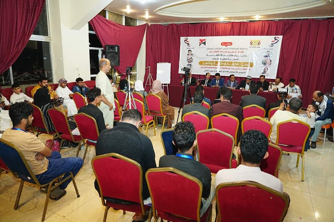 وقام مدير عام مكتب الثقافة عبدالله العليمي، بتكريم عدد من شعراء قصيدة النضال، التي وصفها بأنها كتابات صارخة على جدران تعز النازفة وأحد أبرز حيطان الصد للمد الحوثي الفارسي.