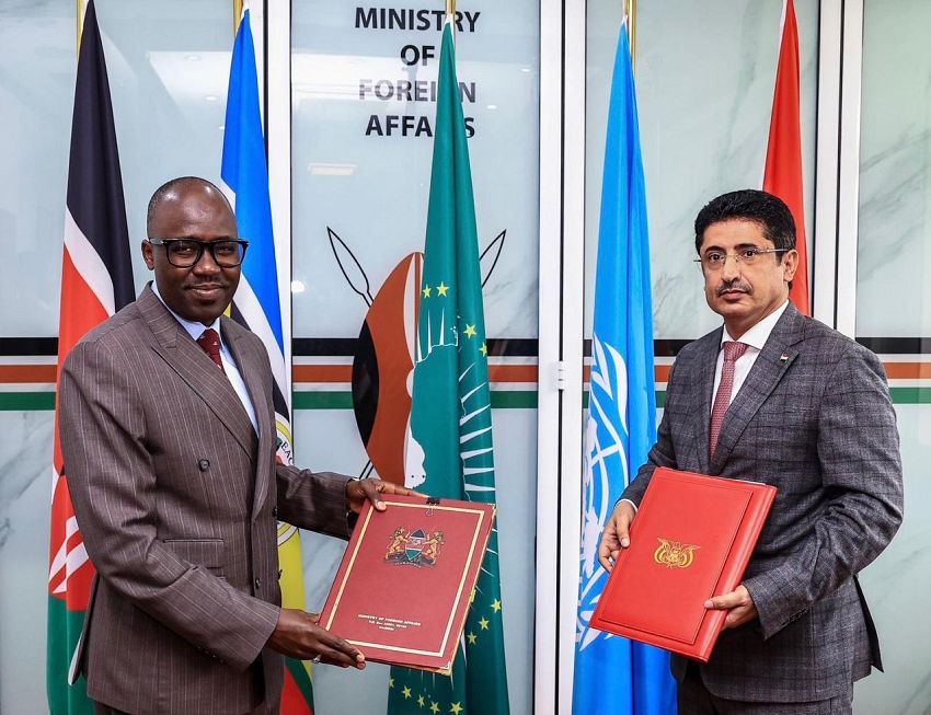 جرى اليوم في العاصمة الكينية نيروبي، توقيع مذكرة تفاهم للتشاور السياسي بين اليمن وكينيا.