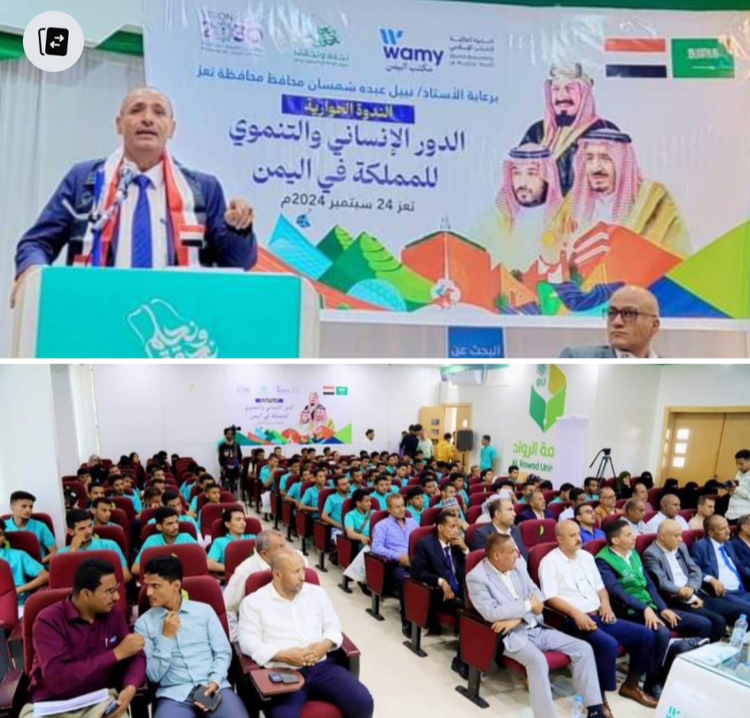 جاء ذلك خلال الندوة الحوارية للدور الانساني والتنموي للمملكة في اليمن والذي نظمها مكتب الندوة العالمية للشباب الاسلامي باليمن، صباح اليوم، برعاية محافظ المحافظة الاستاذ نبيل شمسان.