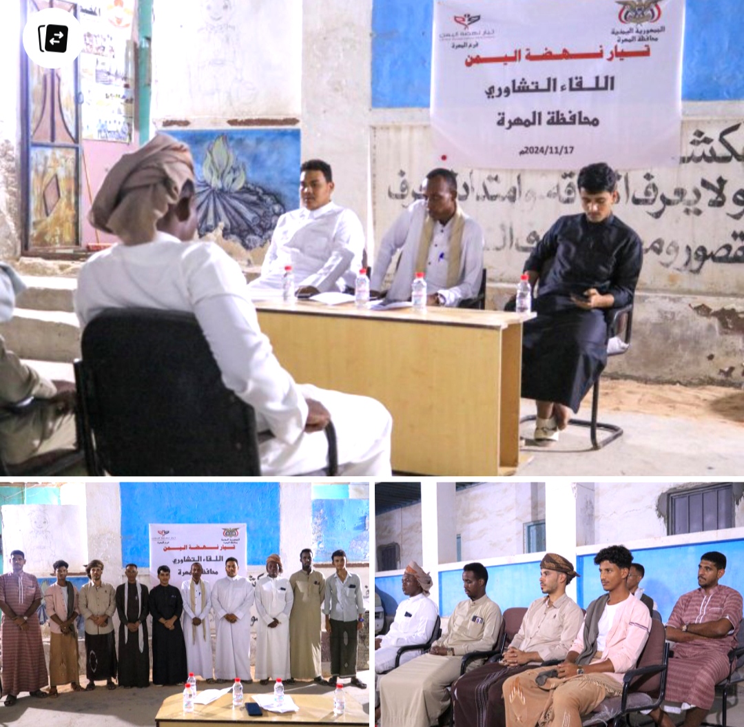 وتضمن اللقاء استعراضاً للخطط المستقبلية الهادفة إلى تطوير الهيكل التنظيمي للتيار على مستوى المحافظة، مع التشديد على أهمية إشراك المجتمع المحلي في أنشطة التيار وتنظيم لقاءات تشاورية دورية لتعزيز التعاون مع مختلف الجهات في المهرة.