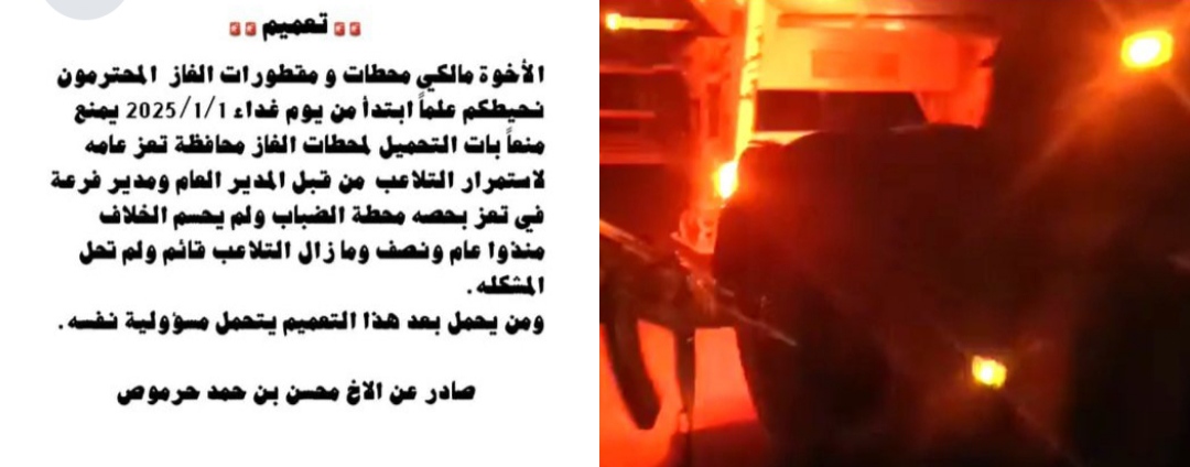 وكان المدعو محسن حرموص، وبتوجيه من “أمين توفيق عبدالرحيم” صاحب محطة الضباب في تعز، قد أصدر تعميماً بمنع تعبئة محطات الغاز ابتداءً من 1 يناير 2025، ما أثار استياءً واسعاً بين السكان، الذين اعتبروا هذا التعميم عملاً عدوانياً يستهدف حياتهم بشكل مباشر.