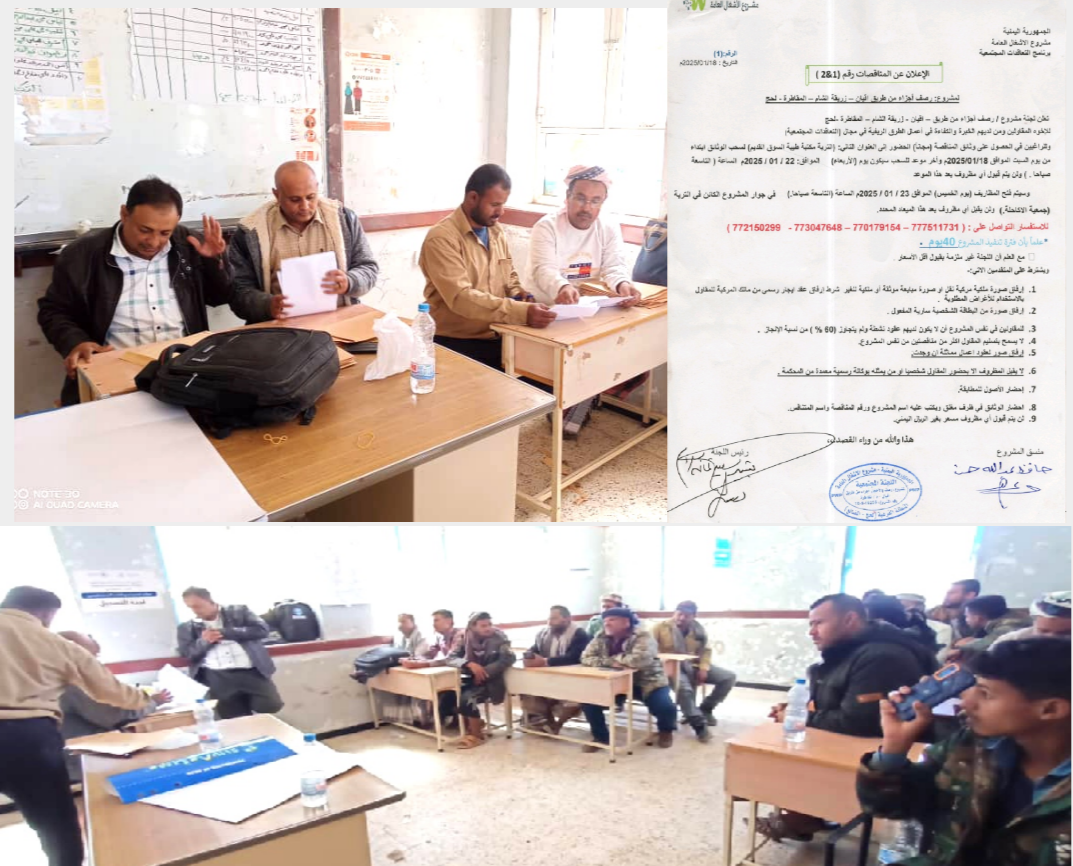 ضمن جهود مشروع الأشغال العامة في عدن ولحج، شهدت مدينة التربة يوم أمس الخميس الموافق 2025/1/23، عملية فتح مظاريف المناقصتين رقمي (1) و (2) الخاصة بمشروع رصف مقاطع من طريق إقيان زريقة الشام، في مديرية المقاطرة بمحافظة لحج.
