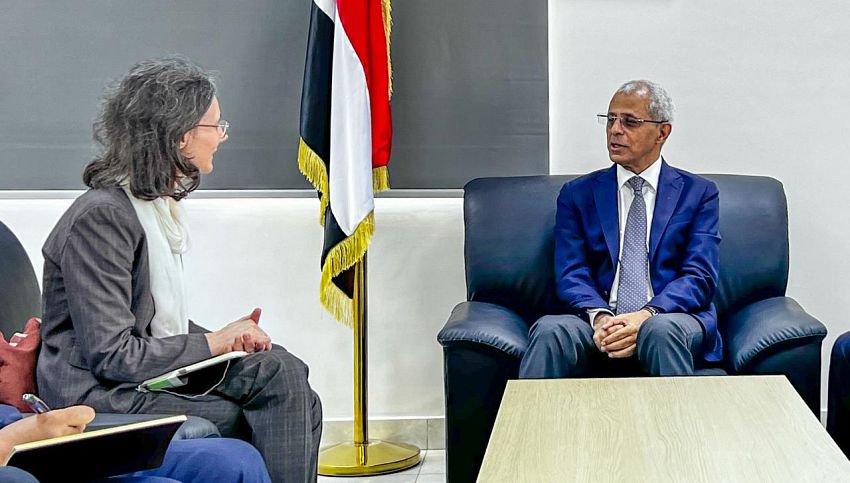 بحث نائب وزير الخارجية وشؤون المغتربين، مصطفى نعمان، اليوم، في العاصمة المؤقتة عدن، مع السفير الفرنسية لدى اليمن، كاترين قرم كمون، علاقات التعاون الثنائي بين البلدين الصديقين وسبل تعزيزها وتطويرها في القطاعات الاقتصادية والتنموية.