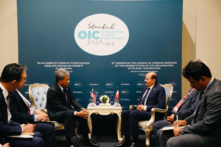بحث وزير الخارجية وشؤون المغتربين، الدكتور شائع الزنداني، اليوم، على هامش أعمال الدورة الحادية والخمسين لمجلس وزراء خارجية دول منظمة التعاون الإسلامي، مع وزير خارجية مملكة ماليزيا، محمد حسن، سبل تعزيز العلاقات الثنائية بين البلدين في مختلف المجالات، بما يخدم المصالح المشتركة ويعزز من أواصر التعاون القائم بين اليمن وماليزيا