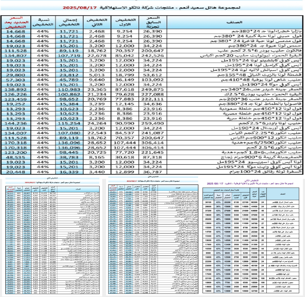 وفي إطار الحملة ذاتها، دشنت شركة ناتكو الاستهلاكية، الذراع التجاري القوي لمجموعة هائل سعيد أنعم، المرحلة الثانية من تخفيضاتها ابتداءً من 17 أغسطس 2025، بنسبة وصلت إلى 44% على مئات الأصناف الغذائية والاستهلاكية الأساسية، وشملت قائمة التخفيضات: (أنواع متعددة من الزيوت النباتية 1لتر-20 لتر، والأرز المستورد بمختلف الأنواع، والمنظفات ومساحيق الغسيل (كريستال، لاجونا، ليبسا، ومنتجات الأجبان والمعلبات الغذائية (فول، تونة، بقوليات).