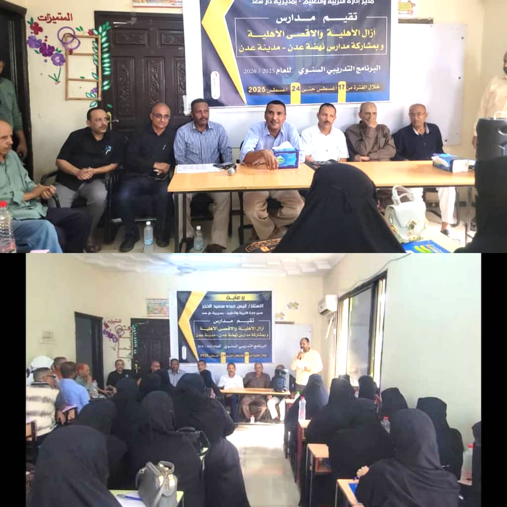 دشنت مدرستا آزال والأقصى الأهليتان بمديرية دار سعد – عدن، وبمشاركة مدارس نهضة عدن، صباح الأحد، البرنامج التدريبي السنوي للعام الدراسي 2025 – 2026، برعاية مكتب التربية والتعليم بالمديرية، والذي يستمر خلال الفترة من 17 وحتى 24 أغسطس الجاري.