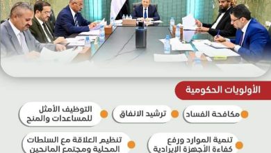 إنفوجرافيك || رئيس الوزراء د.أحمد بن مبارك يرأس اجتماعاً لقيادات السلطة المحلية والتنفيذية بحضرموت عقب وصولة مدينة المكلا