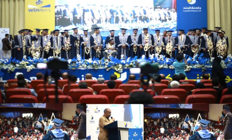 دشنت جامعة الجند للعلوم والتكنولوجيا، اليوم، احتفالات تخرج الدفعة الرابعة من طلابها، والتي حملت اسم “Winners”، تزامناً مع احتفالات اليمن بالذكرى الـ63 لثورة 26 سبتمبر الخالدة، في أجواء وطنية وأكاديمية مبهجة، حيث احتفلت الجامعة بخريجي وخريجات أقسام: الاتصال التسويقي والإعلان، نظم المعلومات الإدارية، اللغة الإنجليزية والترجمة.