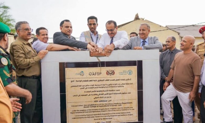 الوزير السقطري يضع حجر الأساس لمشروع تأهيل مركز بحوث الثروة الحيوانية والطب البيطري بكلية ناصر الزراعية