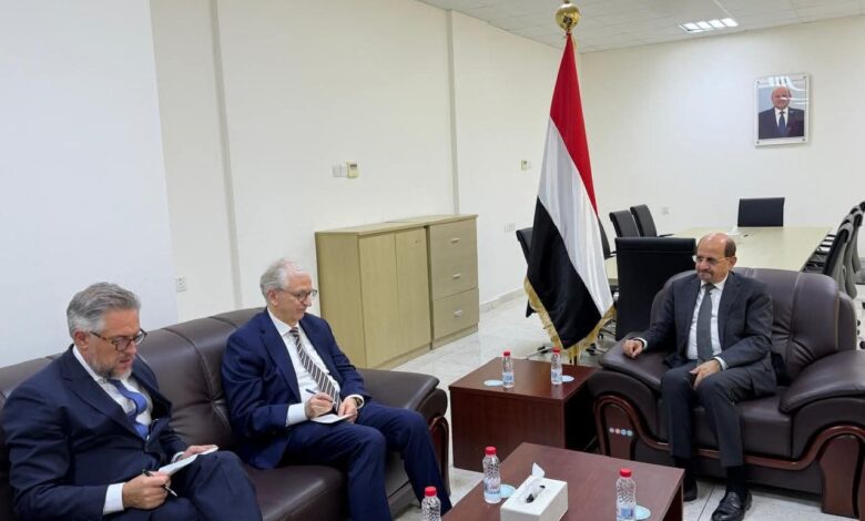 وخلال اللقاء، رحّب الوزير بالسفيرين..مشيداً بدور ألمانيا والاتحاد الأوروبي في دعم جهود إحلال السلام وتعزيز مسار التنمية في اليمن، وكذلك دعم حرية الملاحة البحرية في البحر الأحمر وخليج عدن..مؤكداً حرص الحكومة اليمنية على تعزيز علاقات التعاون والشراكة مع الشركاء الأوروبيين في مختلف المجالات السياسية والاقتصادية والإنسانية.