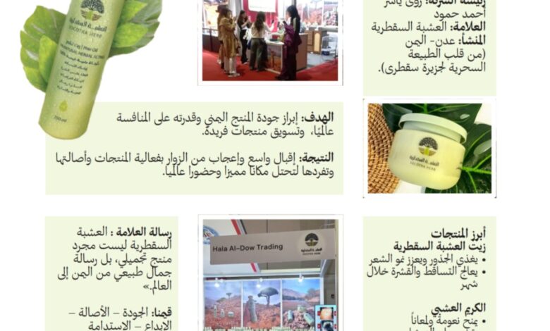 واختتمت حمود تصريحها بالقول إن العشبة السقطرية “ليست مجرد منتج تجميلي، بل رسالة يمنية إلى العالم تحمل الجمال الطبيعي والأصالة والإبداع السقطري”.
