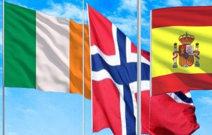 اعترفت كل من إسبانيا وإيرلندا والنرويج رسميا، اليوم الثلاثاء، بدولة فلسطين مستقلة، في خطوة قد تتخذها عدة دول أوروبية.