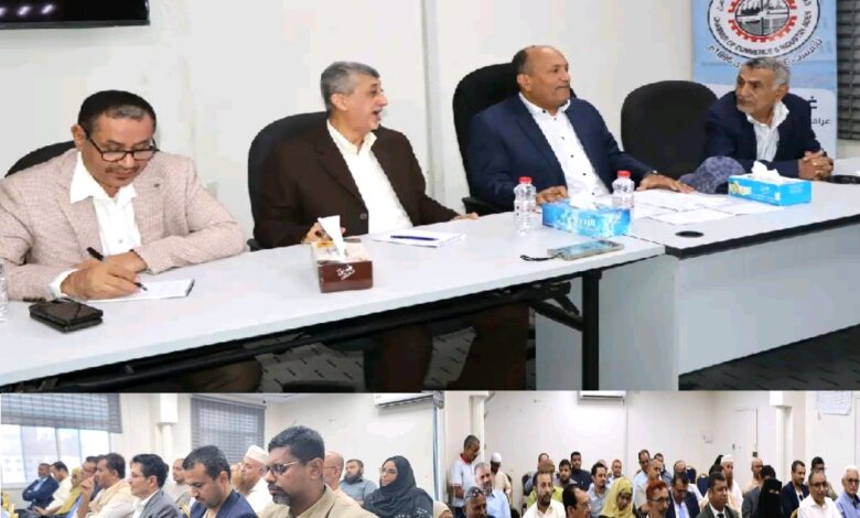 في اجتماع موسّع احتضنه مقر الغرفة التجارية والصناعية بالعاصمة المؤقتة عدن، ناقش نائب وزير الصناعة والتجارة سالم الوالي، ونائب رئيس الاتحاد العام للغرف التجارية الصناعية اليمنية رئيس غرفة عدن التجارية الصناعية أبو بكر باعبيد، جملة من القضايا والملفات المتصلة بالنشاط التجاري والصناعي بحضور وكلاء الوزارة وعدد من كبار التجار والمستوردين ورجال الأعمال.