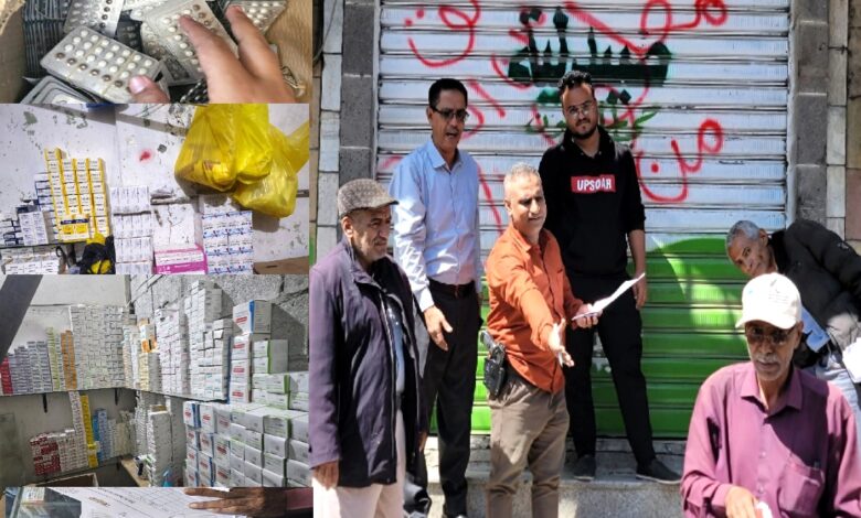 ضبط كميات كبيرة من الأدوية المهربة في إحدى الصيدليات في مديرية القاهرة بـ«تعز»