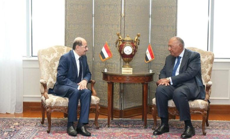 من جانبه، أكد وزير الخارجية المصري، دعم مصر للشرعية اليمنية ممثلة بمجلس القيادة الرئاسي..مشيراً إلى تأييد مصر لكافة الجهود الرامية إلى التوصل لحل سياسي شامل للأزمة اليمنية، بما يلبي طموحات الشعب اليمني وينهي معاناته الإنسانية، وفق مرجعيات الحوار الوطني اليمني والمبادرة الخليجية ومخرجات المشاورات اليمنية الأخيرة في الرياض، وكذلك وفقاً لقرارات مجلس الأمن ذات الصلة وفي مقدمتها القرار رقم ٢٢١٦..مشدداً على دعم مصر الراسخ لوحدة الدولة اليمنية ومؤسساتها واستقلالها وسلامة أراضيها..منوهاً الى ما يمثله أمن واستقرار اليمن من أهمية قصوى للأمن القومي المصري وأمن المنطقة العربية ومنطقة البحر الأحمر.