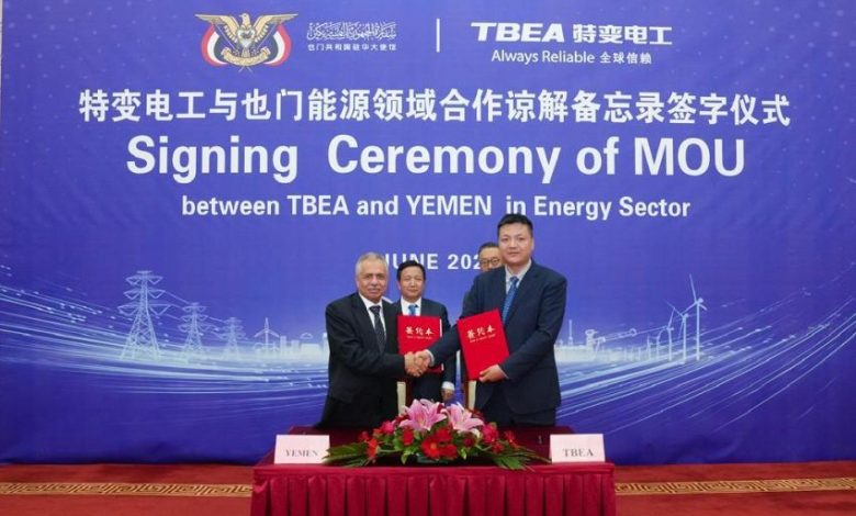 وقعت الحكومة اليمنية، اليوم، بمقاطعة شينجيانع الصينية، مذكرة تفاهم مع الشركة الصينية للطاقة والمعدات الكهربائية (TBEA Co., lTD).