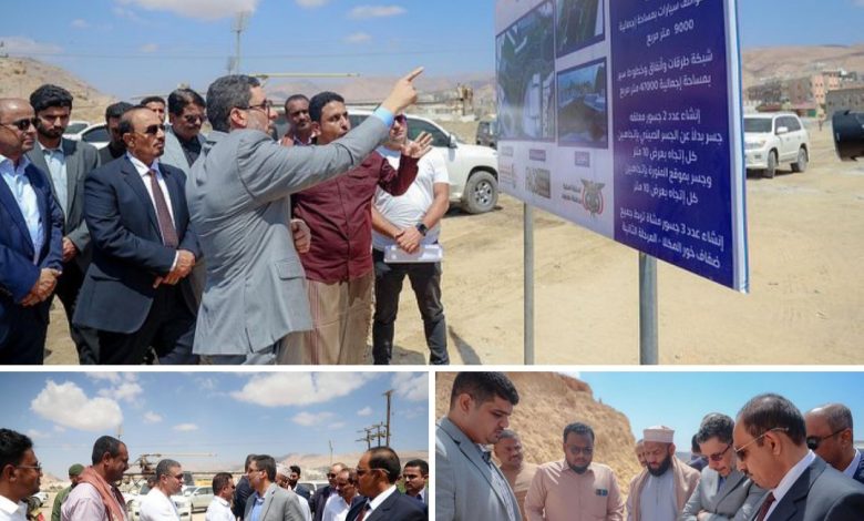 واطلع رئيس الوزراء، على سير العمل بمشروع شق وسفلتة المسار الجديد لطريق الدائري “وسط”، بطول 4 كيلو و 400 متر، ويرتبط من منطقة الغويزي بديس المكلا الى طريق الغليلة امبيخة، والذي ينفّذ على اتجاهين وسيسهم في إحداث نقلة تنموية بالمنطقة والتخفيف من حالة الازدحام بديس المكلا، ويفتح مجالاً للقواطر ومختلف العربات للتوجه مباشرة من الغويزي باتجاه مدينة فوة.