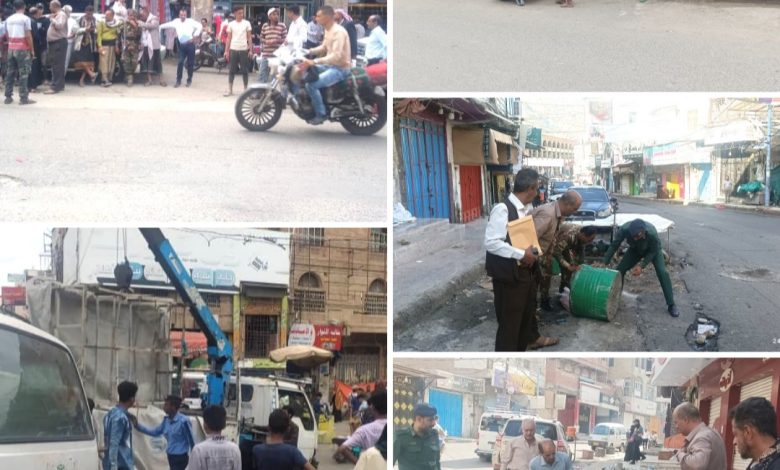 سلطة القاهرة تنفذ حملة واسعة لإزالة البسطات المخالفة من شوارع مدينة تعز