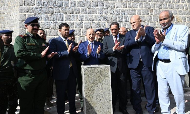 رئيس مجلس القيادة وعضوا المجلس يضعون حجر الاساس لنصب الشهداء التذكاري بتعز