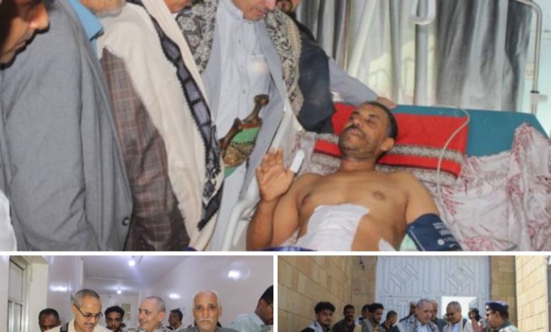جاء ذلك خلال الزيارة التي قام بها الوكيل المخلافي ومعه (رئيس نيابة الاستئناف القاضي محمد سلطان)، اليوم، للقاضي عبدالعزيز السفياني عضو نيابة الاستئناف، الذي يتلقى العلاج بمستشفى الثورة العام بعد تعرضه، أمس الجمعة، لقنص من قبل مليشيا الحوثي في منطقة صالة وهو بجوار منزله والذي أدت الى إصابته إصابة بالغة.