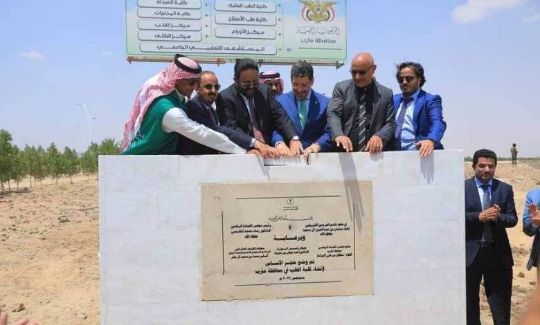 العرادة وبن مبارك يضعان حجر الأساس لإنشاء مبنى كلية الطب بجامعة إقليم سبأ بتمويل سعودي