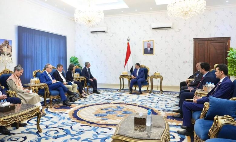 رئيس الوزراء يعقد اجتماعاً في عدن مع بعثة وسفراء عدد من دول الاتحاد الأوروبي