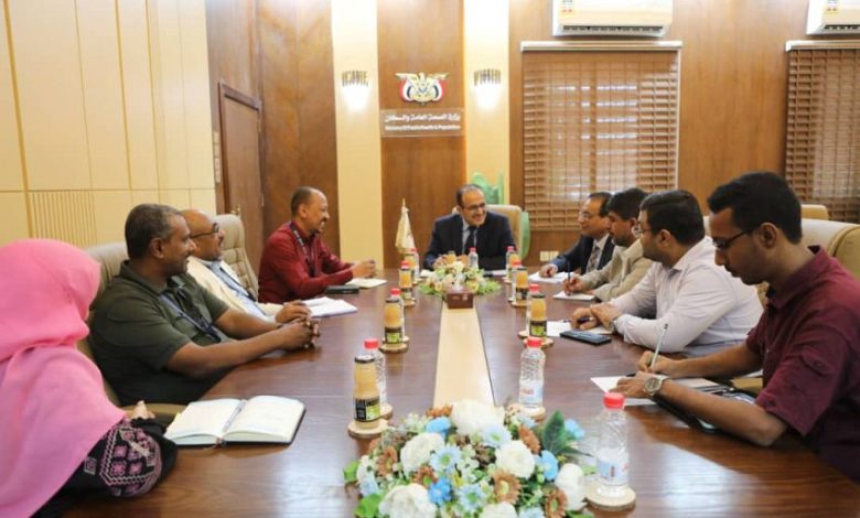 واستمع وزير الصحة خلال لقاءه المدير القطري بالإنابة للمنظمة طيب عمر، إلى خارطة توزع التدخلات الصحية للمنظمة في عدد من المحافظات بمجالات الصحة والتغذية والتعليم.