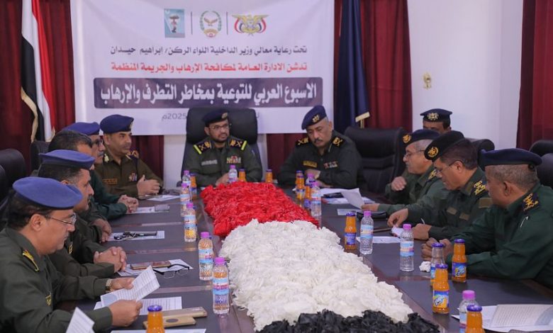 بدوره أكد نائب مدير عام مكافحة الإرهاب والجريمة المنظمة العقيد عبدالله الآنسي، أن الأفكار المتطرفة أيا كان مصدرها تحتاج إلى تضافر الجهود وتكاتف جميع مؤسسات الدولة الأمنية والإعلامية والتوجيه والإرشاد الديني والتربية ومنظمات وهيئات المجتمع المدني لتخليص أسرنا وشعوبنا العربية من شرور التطرف والإرهاب، وذلك من خلال التعريف بالدعاية والاستقطابات الإرهابية ومدى خطورتها على المجتمع والأفراد، ورسم الخطط والبرامج الوطنية والعربية الوقائية، والخطاب الديني والإعلامي المتسم بالوسطية والاعتدال، ومواجهة الخطابات والأفكار المتطرفة للجماعات والمليشيات الإرهابية بما يدحضها ويحصن المجتمع من آثارها السلبية على الأجيال، ومشاركة الجميع في هذا المنوال من مؤسسات رسمية أمنية ومدنية وإعلامية وإرشادية مع توحيد الخطاب وكلا في مجال ونطاق اختصاصه، وتعزيز دور الأسرة والمدرسة والمشاركة المجتمعية وفق إستراتيجية مدروسة.. مستعرضا الإنجازات الأمنية على صعيد مكافحة الإرهاب.