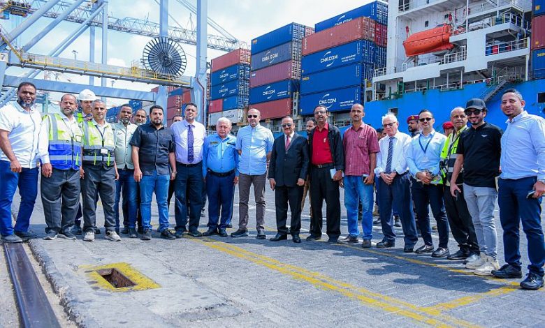 وزير النقل يطلع على سير الحركة التجارية والنشاط في ميناء الحاويات في عدن