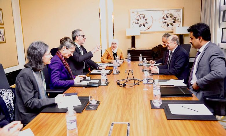 وأشاد الدكتور الزنداني خلال اللقاء الذي ضم سفير الإتحاد الأوروبي لدى اليمن، غابرييل مونويرا فينيالس، والسفير الالماني هوبيرت ييغير، والسفيرة الهولندية جانيت سيبين، والسفيرة الفرنسية، كاترين قرم كمون، والسفير البلغاري، ومسؤول ملف اليمن من وزارة الخارجية الهولندية جواد العزاوي، بالدعم الأوروبي المستمر للحكومة اليمنية في مختلف المجالات..مؤكداً على أهمية تعزيز التعاون بين اليمن ودول الاتحاد الأوروبي وبما يخدم الأهداف المشتركة للجانبين لتحقيق الأمن والاستقرار في اليمن والمنطقة.