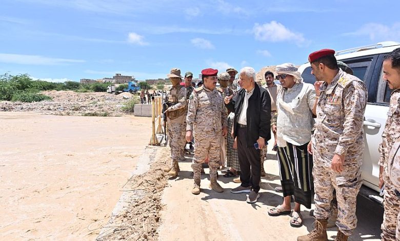 وزير الدفاع ومحافظ المهرة يطلعان على اضرار عدد من الطرق جراء المنخفض الجوي