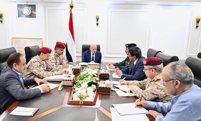 كما تطرق الاجتماع الى الاجراءات المطلوبة للتعاطي مع قرار تصنيف المليشيات الحوثية منظمة ارهابية اجنبية، والجهود المنسقة مع المجتمع الدولي بموجب قرار مجلس الدفاع الوطني لتجفيف مصادر تسليح وتمويل المليشيات الارهابية، وردع ممارساتها المزعزعة لفرص الاستقرار المحلي، والسلم والامن الدوليين.