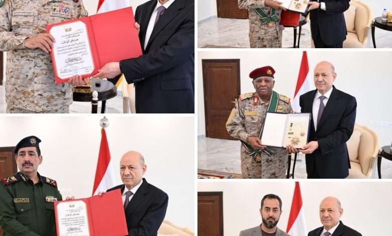 رئيس مجلس القيادة الرئاسي يكرم شهداء وجرحى القوات المسلحة والامن وعددا من القادة المناضلين