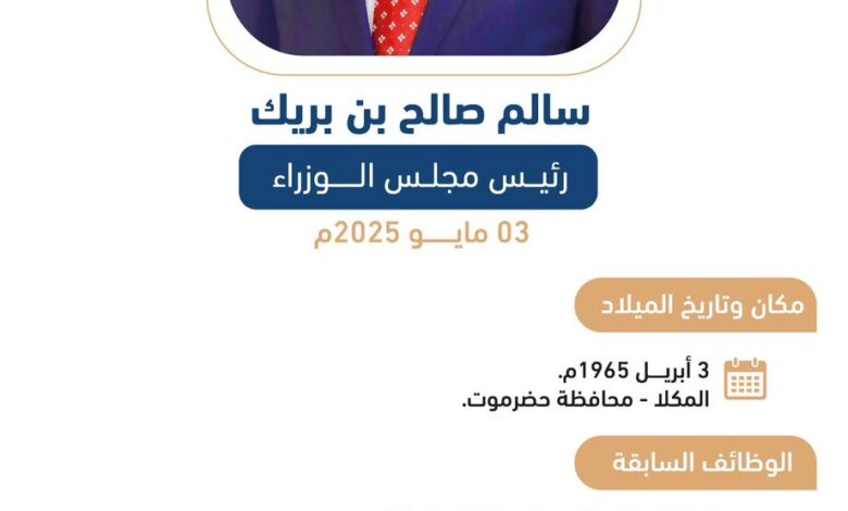 الرئيسية/السلايدر الرئيسي/إنفوجرافيك | السيرة الذاتية لدولة رئيس الوزراء سالم بن بريك إنفوجرافيك | السيرة الذاتية لدولة رئيس الوزراء سالم بن بريك 4 مايو، 2025 4 مايو، 2025 فيسبوك تويتر لينكدإن Tumblr بينتيريست Reddit VKontakte مشاركة عبر البريد طباعة