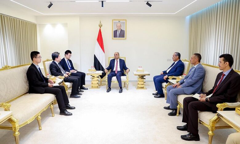 رئيس الوزراء يستقبل في عدن القائم بأعمال السفارة الصينية لدى اليمن